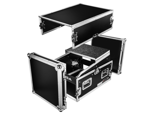 Our Glide Style™ combo racks patented design features a sliding laptop platform mounted on a traditional case. At your gig, set your laptop on the carpeted surface, plug in and you're ready to go. Slide it forward to use your laptop. Slide it back to use the mixer section underneath. Keep your laptop close and safe on a sturdy new Glide Style case.